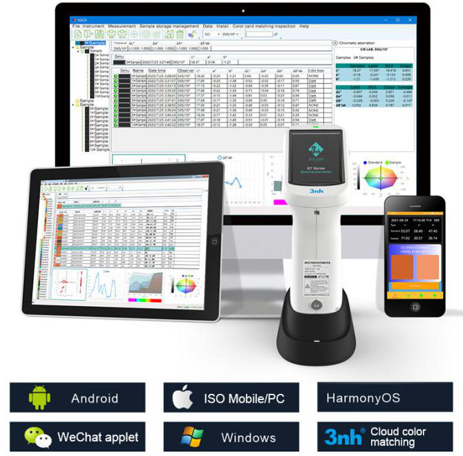 반복성 ΔE * ab ≤0.018, 기기 간 오차 ΔE * AB ≤0.18 데이터는 안정적이고 신뢰할 수 있어 여러 기기로 측정한 데이터의 일관성을 보장하며, 색상 일치 및 정확한 색상 전송에 사용할 수 있습니다.