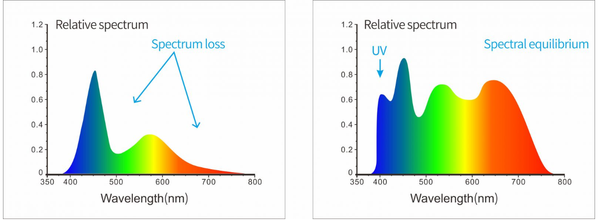 어레이 분광기 ST2222는 400~700nm의 전 파장 대역에서 균형 잡힌 LED와 UV 광원을 조명 광원으로 채택하여 가시광선 영역에서 충분한 스펙트럼 분포를 제공하고 특정 파장 대역에서 백색 LED의 스펙트럼 손실을 방지하며 형광 물질도 쉽게 측정할 수 있습니다.