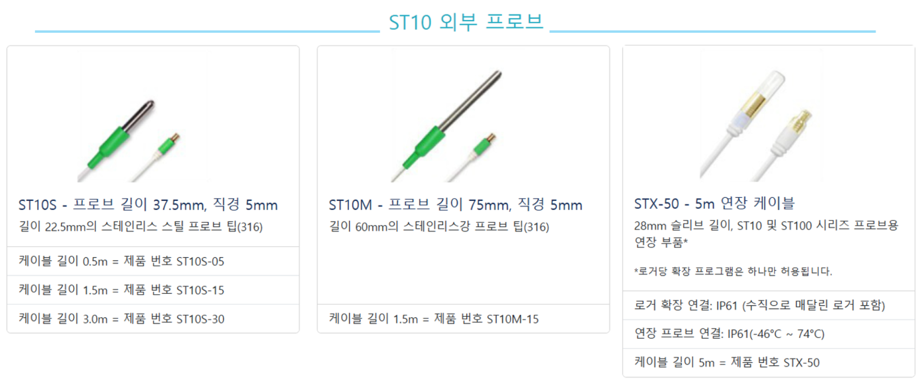 LogTag® UTREL-16F는 ST10 외부 프로브와 호환됩니다.
