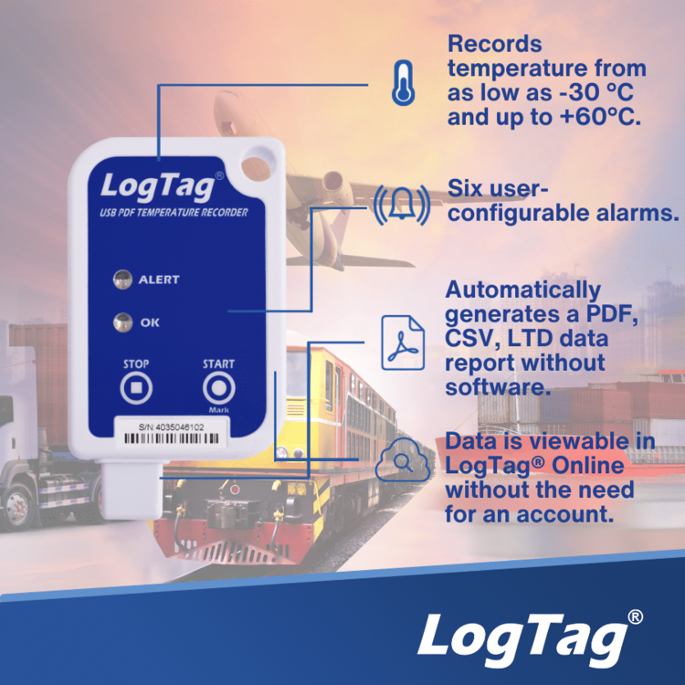 LogTag® USRIC-8 PDF 온도 기록기는 -30°C ~ +60°C의 측정 범위에서 최대 8,000개의 실시간 온도 측정값을 측정하고 저장합니다. (USRIC-16 모델은 16,000개)