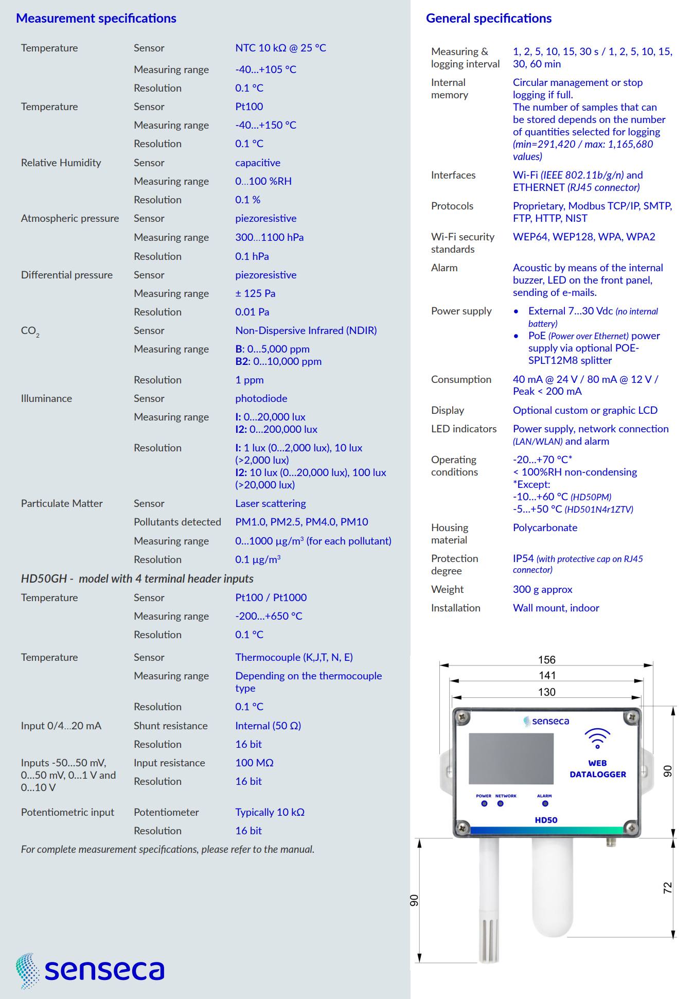 Senseca는 이미 RF 통신 기반의 HD35 시리즈를 보유하고 있습니다 . 네트워크가 매우 넓거나 복잡하거나 여러 건물로 나뉘어 있는 경우, 유선, Wi-Fi 및 무선 주파수(RF) 데이터 로거를 혼합하여 사용하는 것이 최적의 솔루션일 수 있습니다. HD50 시리즈는 이러한 하이브리드 네트워크에 통합될 수 있도록 설계되었습니다.