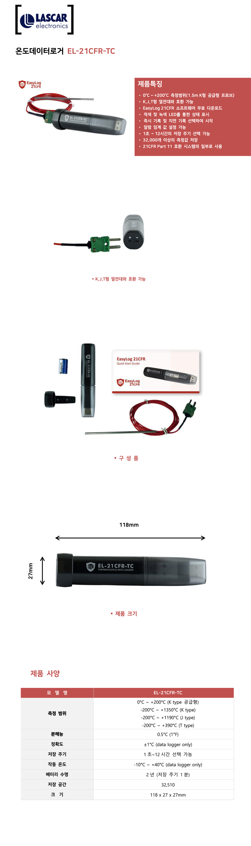 열전대 온도로거 LASCAR EL-21CFR-TC