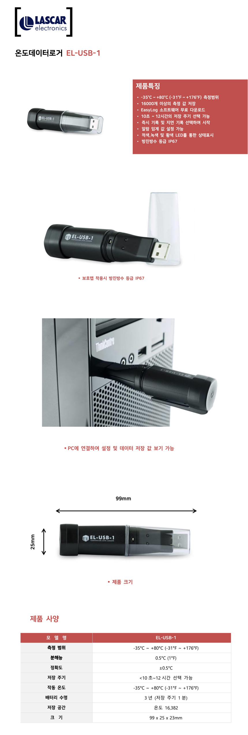 온도 데이터로거 LASCAR EL-USB-1